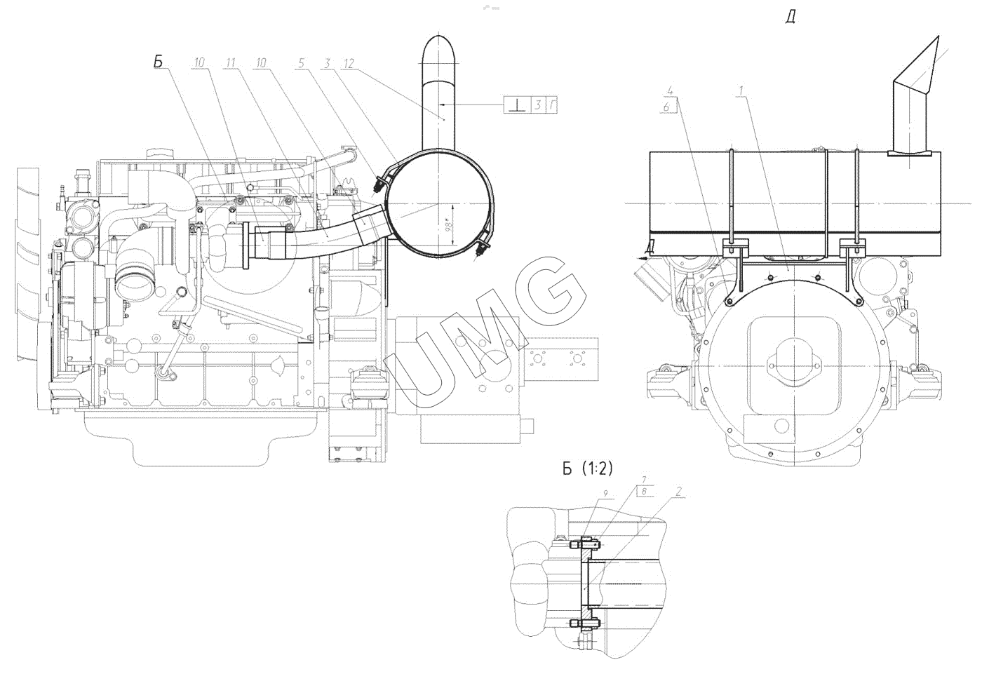 E200W. 160-00-28.01.000-02 Установка глушителя
