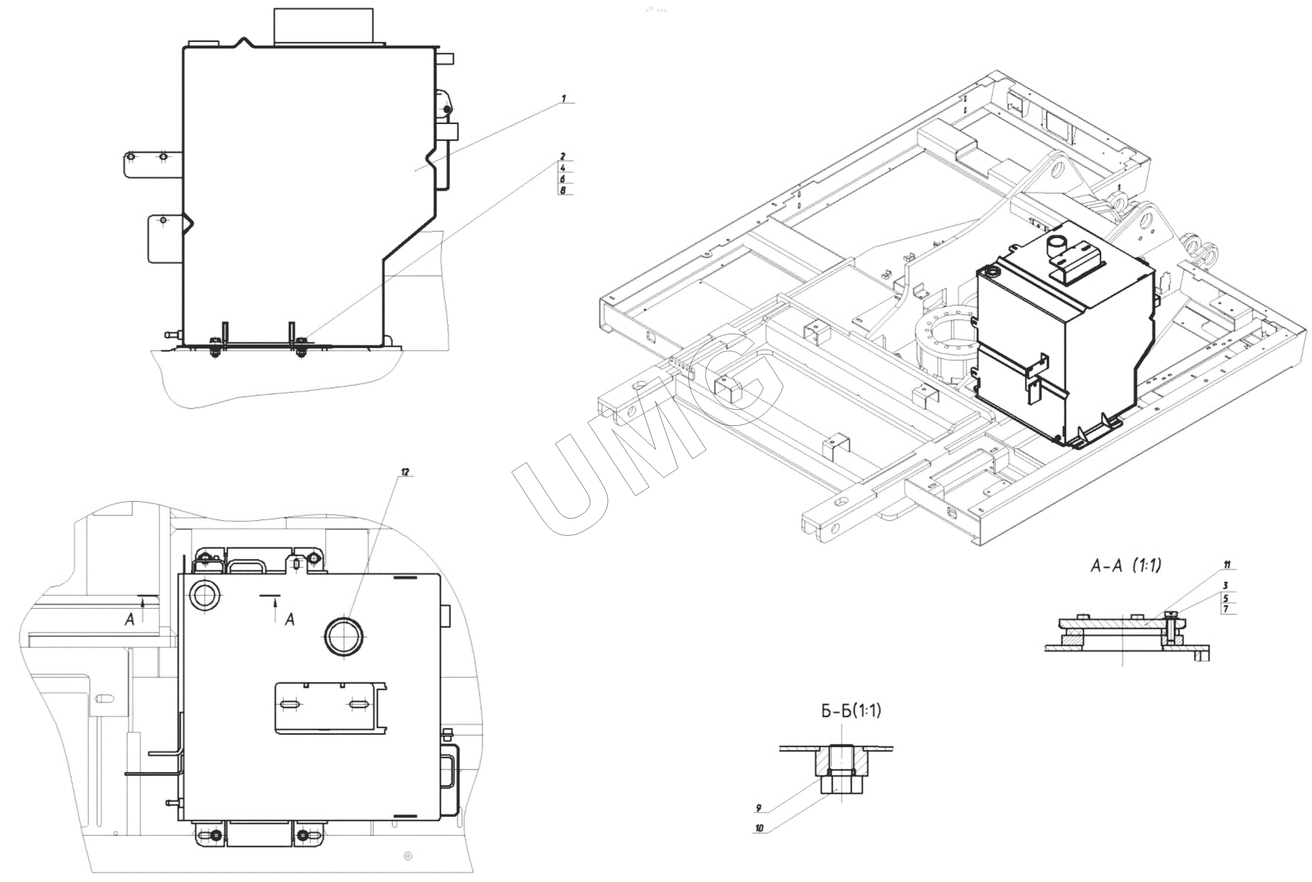 E200W. 175-20-27.00.000 Установка бака топливного