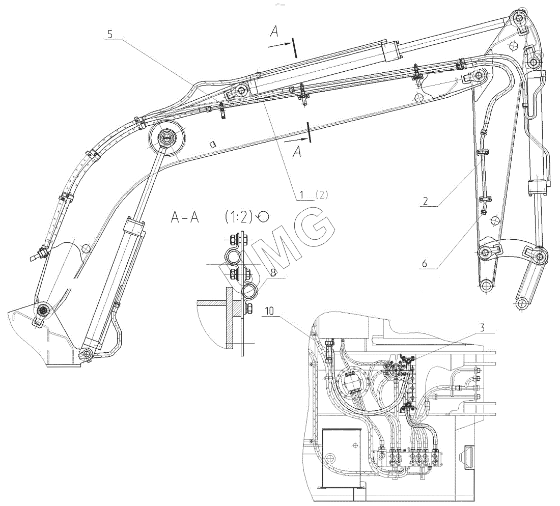 E200W. 170-01-80.90.000-32 Трубопроводы гидромолота на рабочем оборудовании