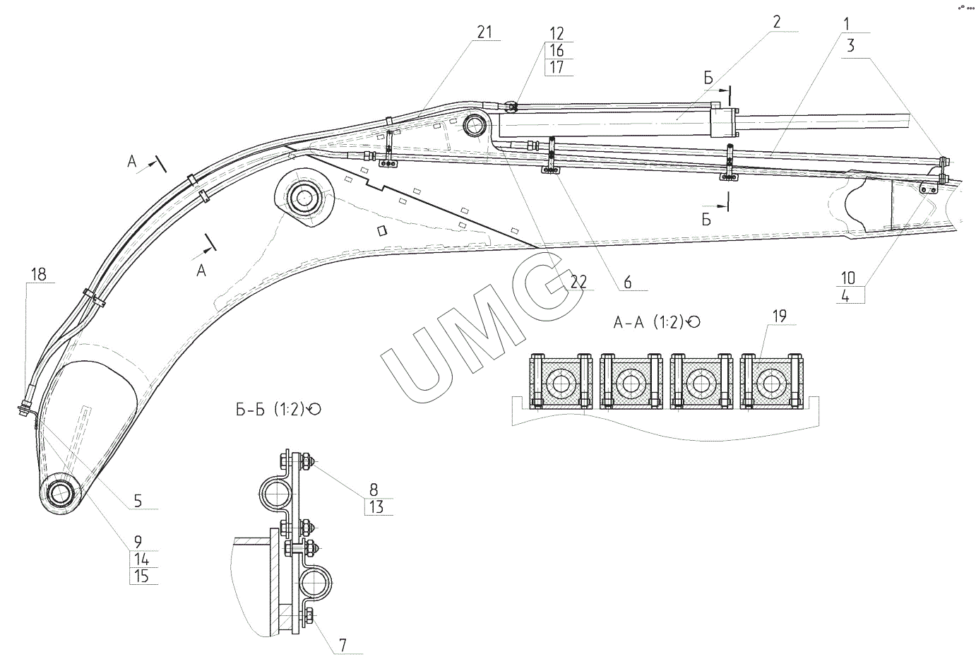 E240C. Трубопроводы стрелы в сборе с гидроцилиндром