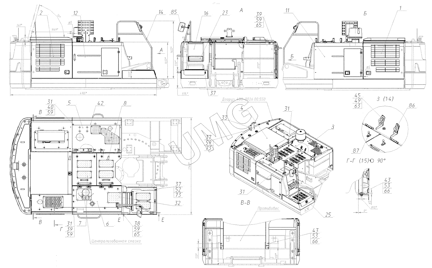 E400C. Установка капотной системы 400-00-22.00.000 (Экскаватор Е400С)