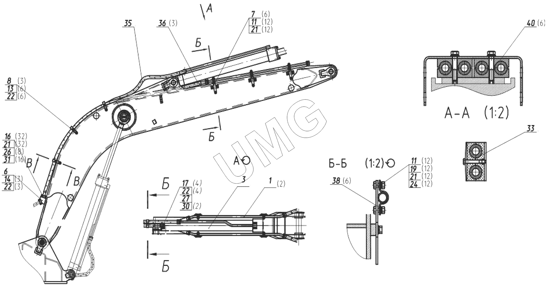| 3 | 3523-00-81.30.100 | Гидроцилиндр рукояти с трубопроводами | |