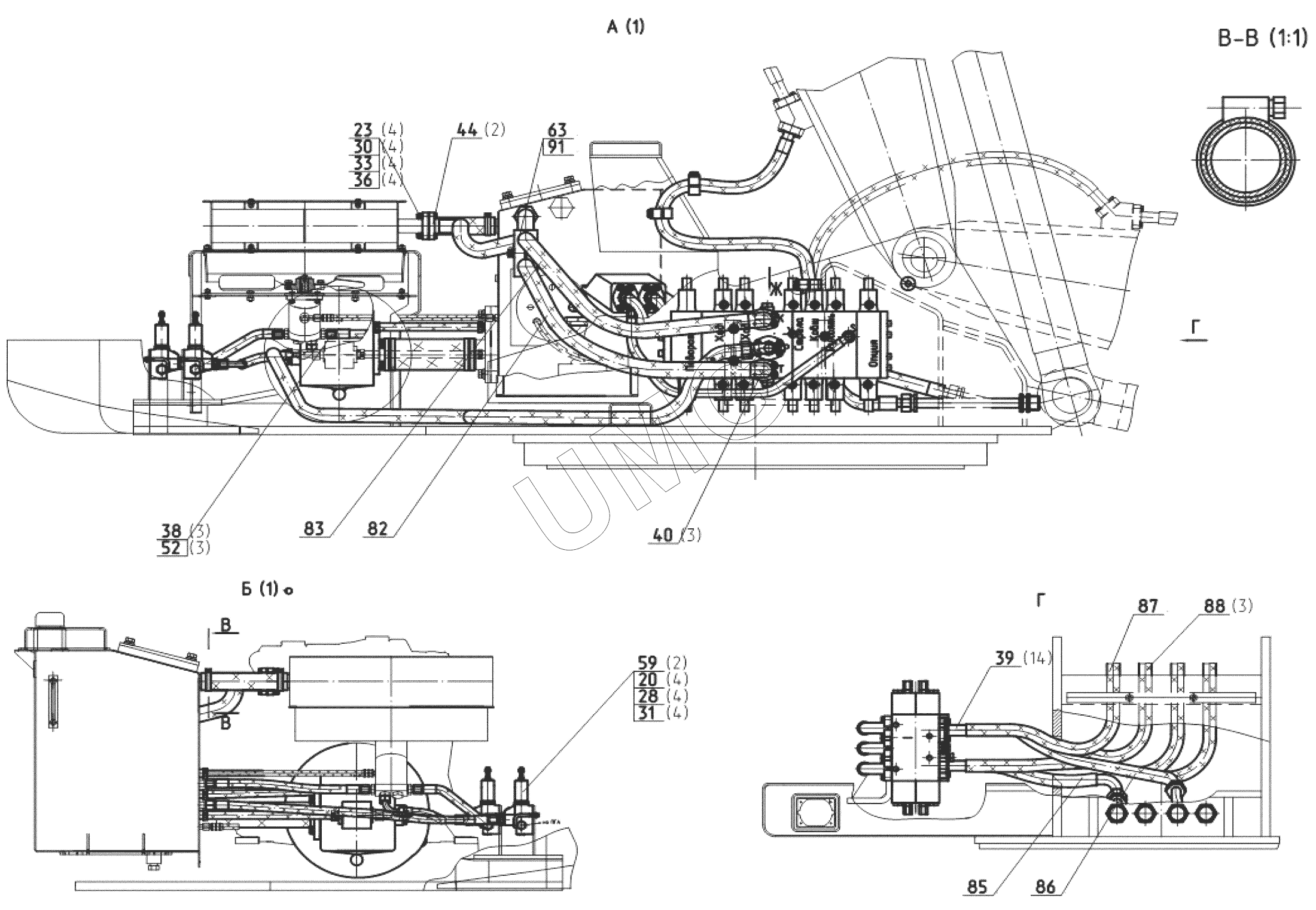 ЭОВ-3523. Трубопроводы на поворотной платформе 3523-00-41.00.000