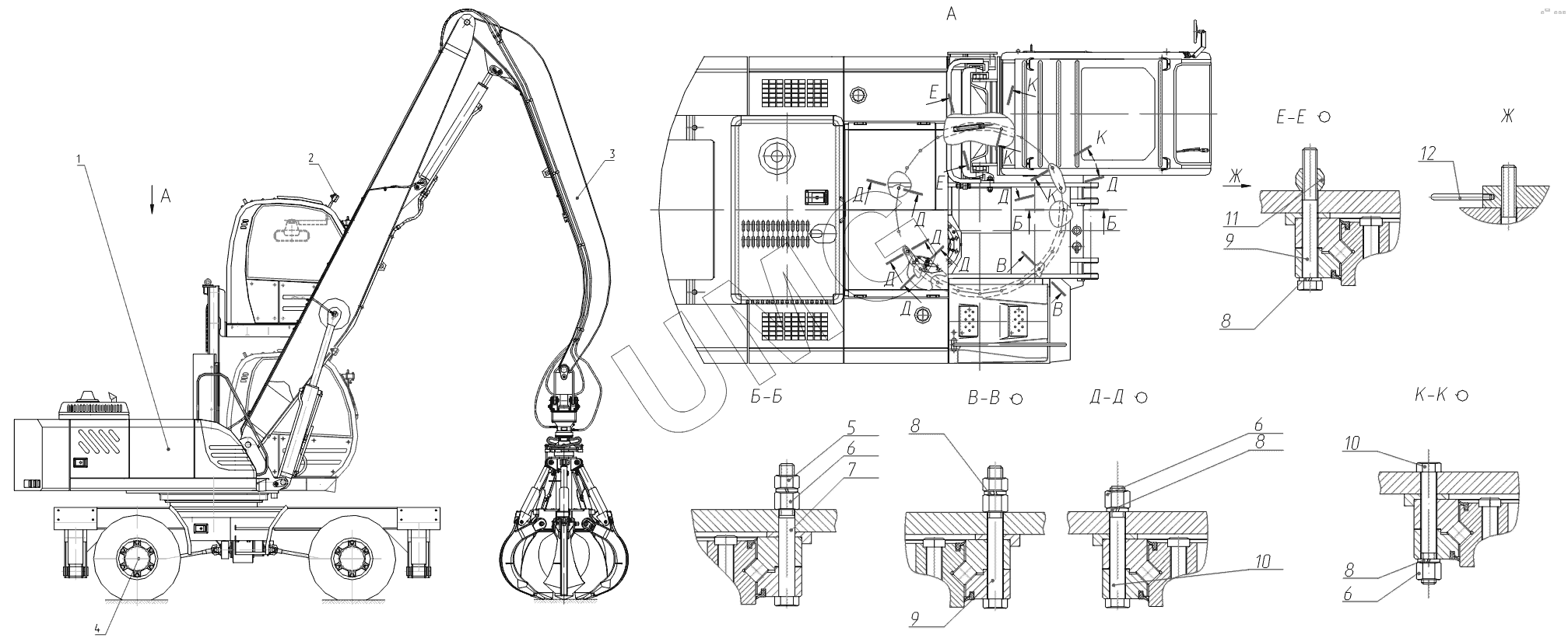 ЕК-18-40. 318-40-00.00.000 Экскаватор пневмоколесный гидравлический с подъемной кабиной
