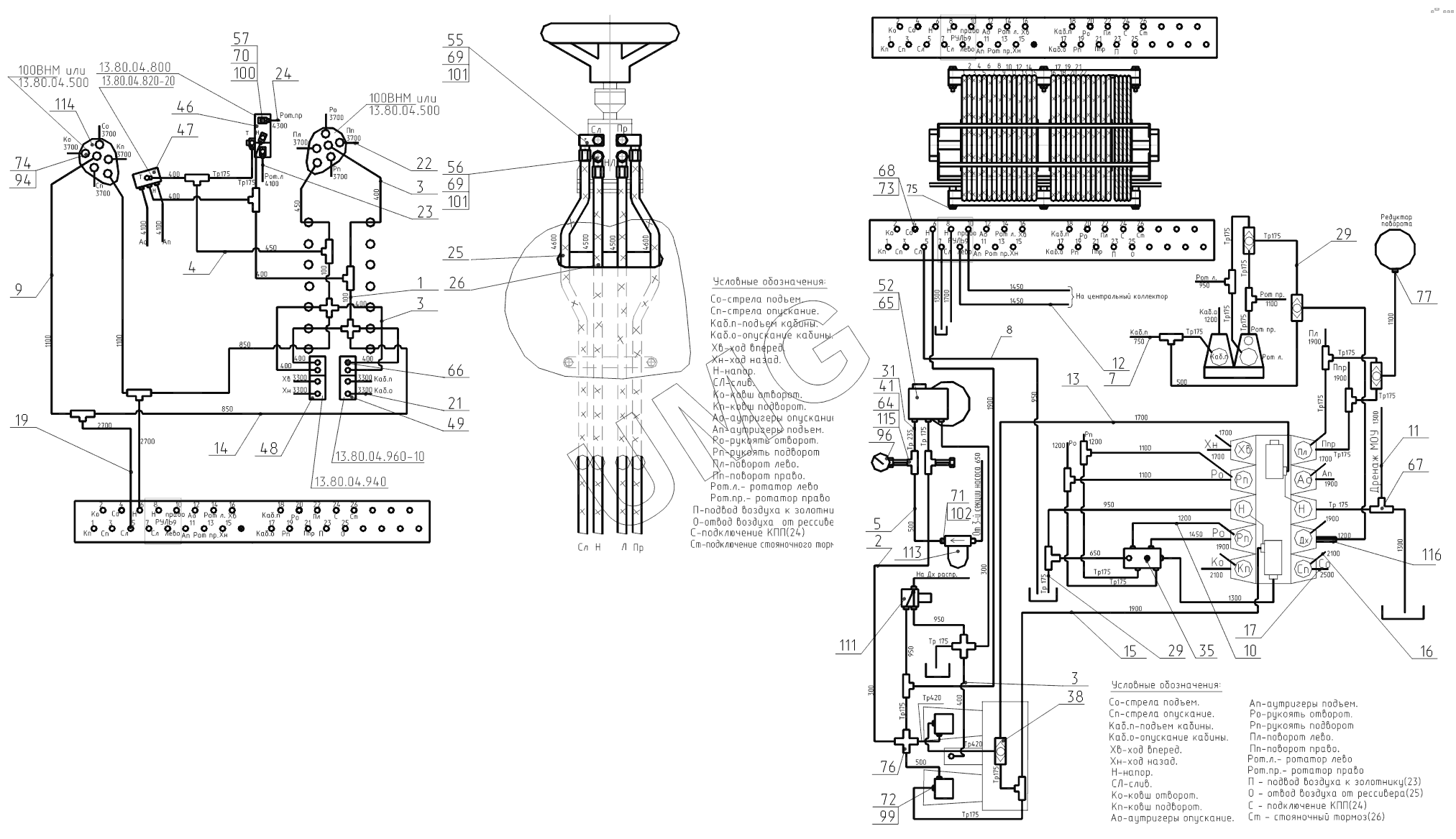 ЕК-18-40. 318-40-80.04.000 Гидроуправление на поворотной платформе (монтажная схема)