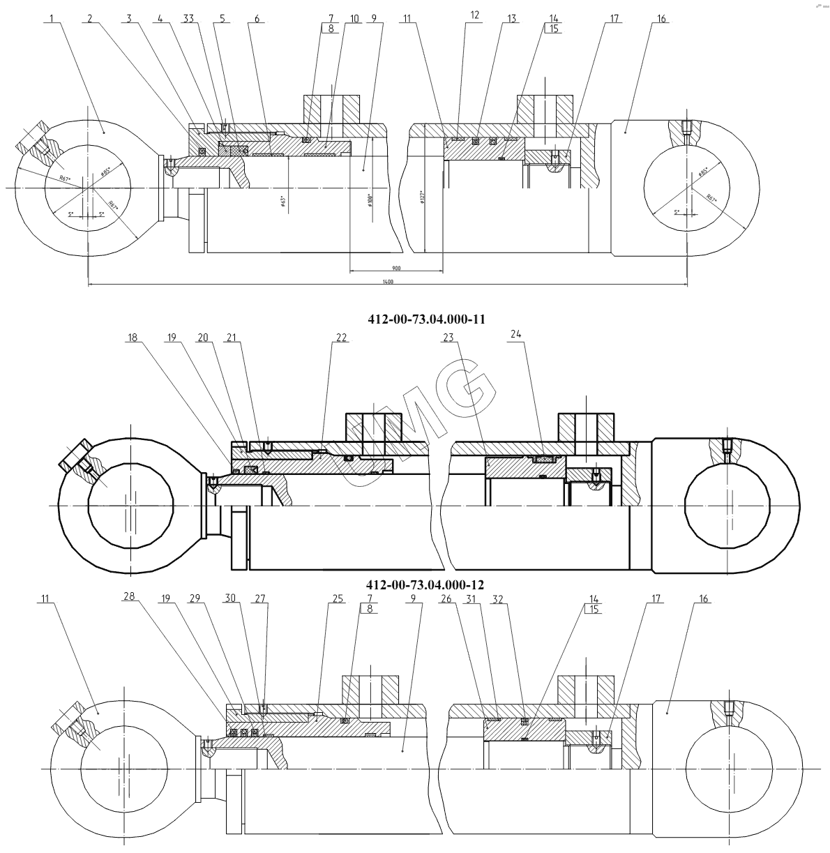 ЕК-12 (2007). 412-00-73.04.000, 412-00-73.04.000-11, 412-00-73.04.000-12 Гидроцилиндр