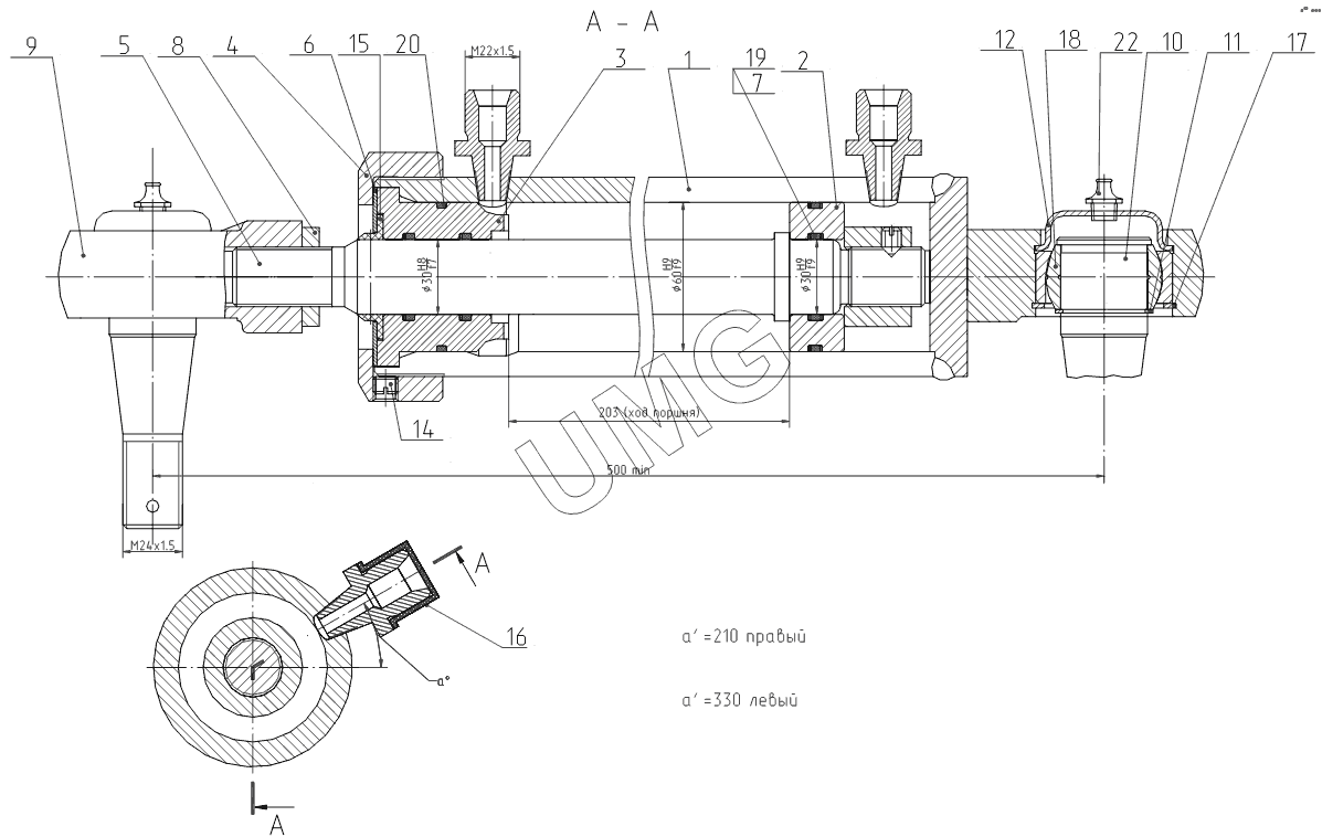ЕК-12 (2007). ЭО-3323А.71.80.300-10 Гидроцилиндр поворота колес (правый, левый), для модификаций ЕК 12 (с опорой-отвалом и аутригерами)