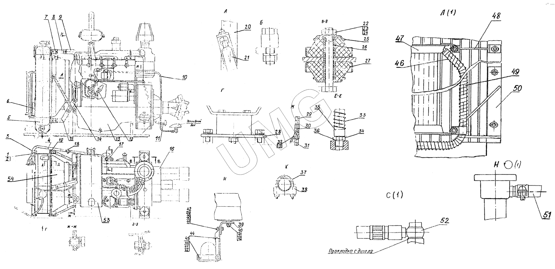 ЕК-12 (2007). 312-04-03.51.000 (312-04-03.51.000-20) Установка силовая (для модификаций ЕК-12 с двигателем Д-243)