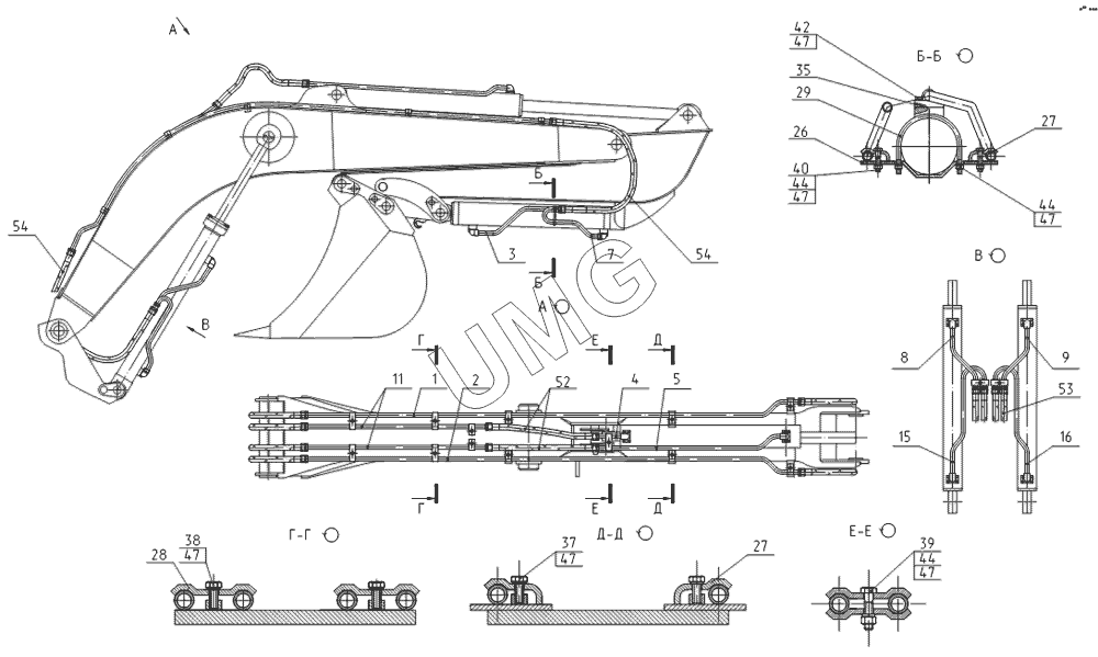 ЭОВ-3521. Трубопроводы рабочего оборудования