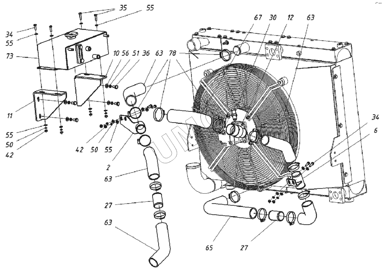 WХ-200. Патрубки водяного радиатора и расширительный бачок