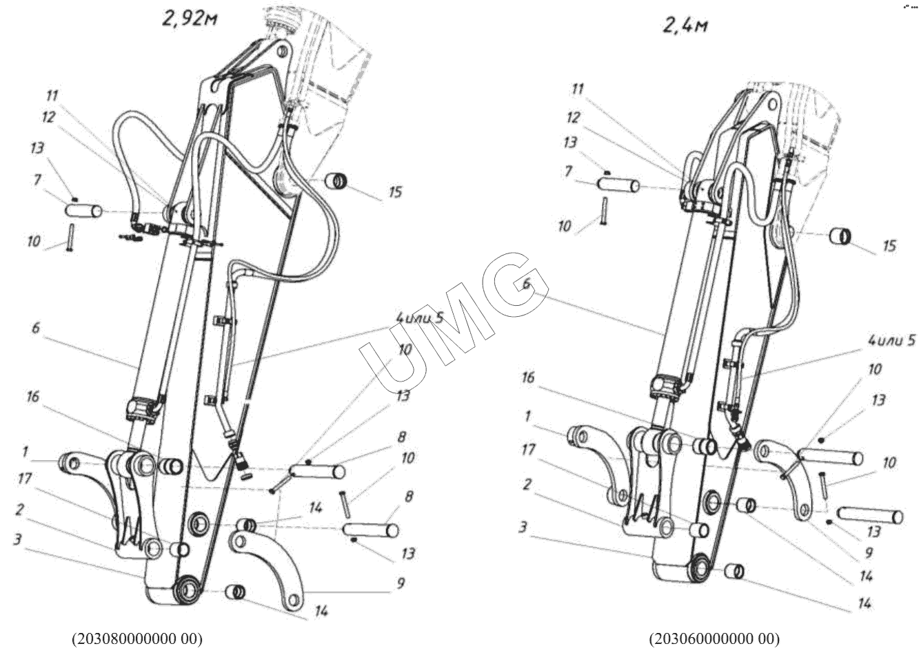 WХ-200. 203080000000 00 Установка рукояти 2920 с разводкой под гидромолот, 203060000000 00 Установка рукояти 2400 с разводкой под гидромолот