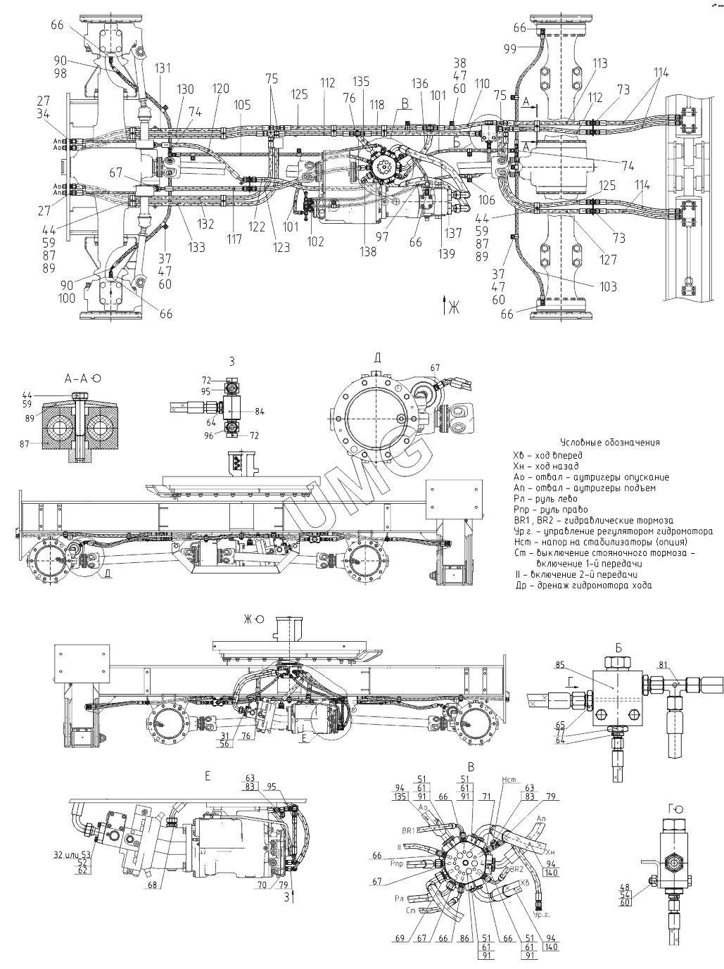 WХ-200 (2017). 201010300000 00 Гидрооборудование ходовой тележки (раздельное управление аутригеров), 201010300000 10 (основной вариант)