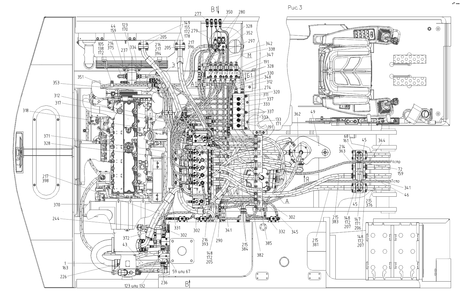 ТХ-220. 212080000000 30 Гидрооборудование на поворотной платформе (двигатель “ЯМЗ”, гидравлика с электороуправлением)