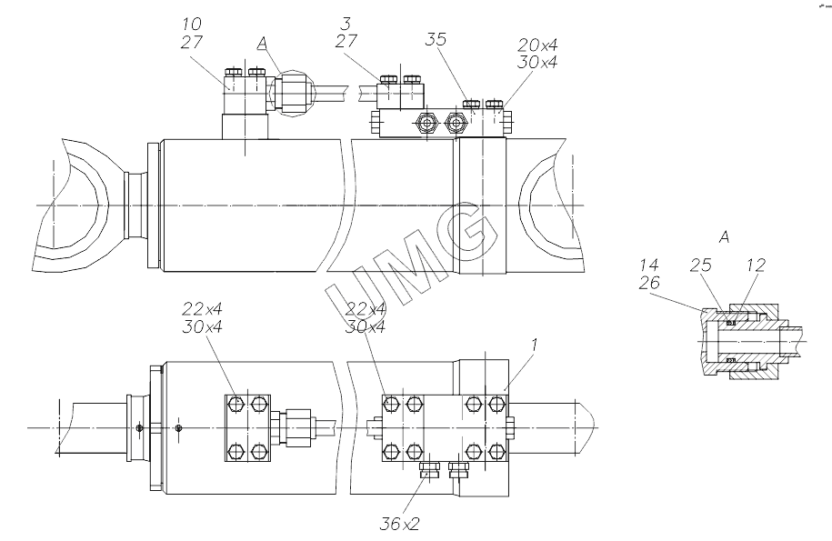 TVEX-180i. 002210105400 00 Гидроцилиндр выносных опор левый