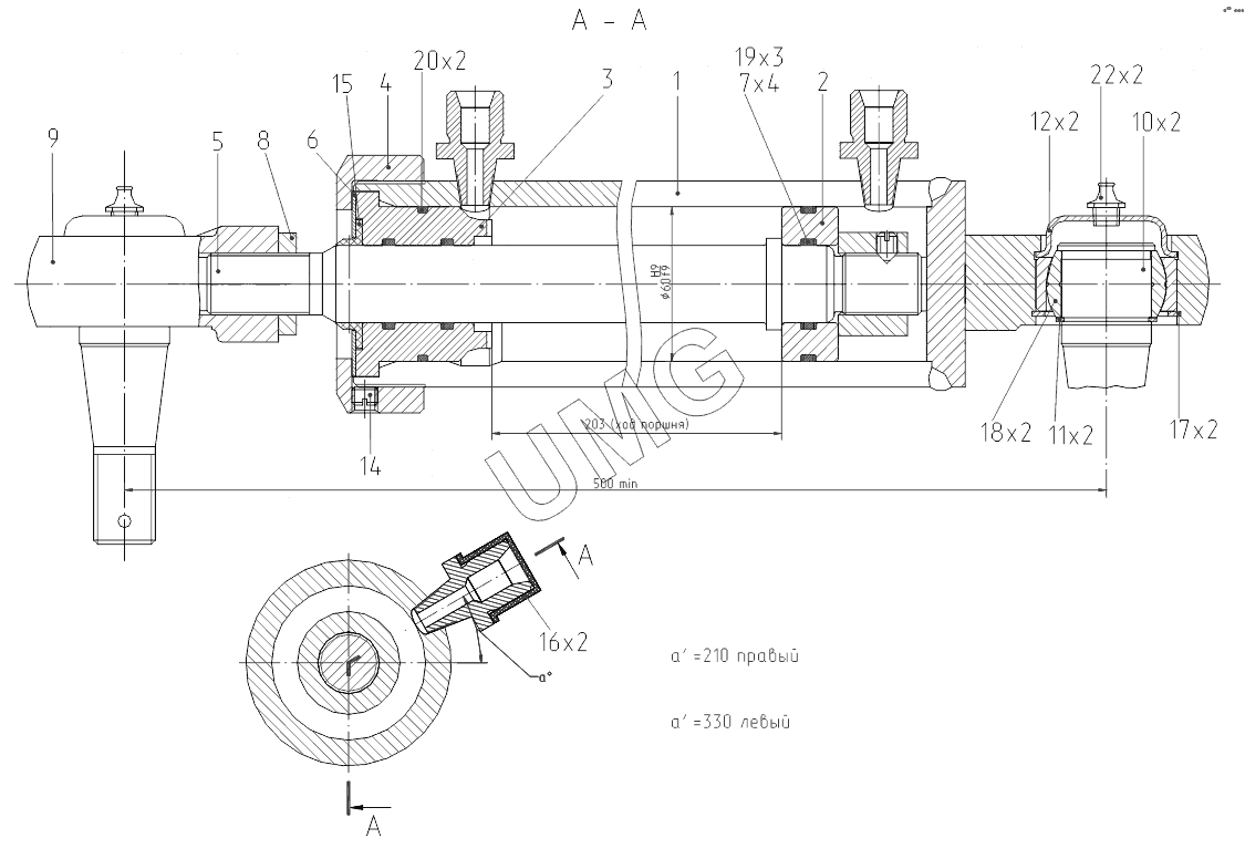 ЕК-14-90. ЭО-3323А.71.80.300-10, ЭО-3323А.71.80.400-10 Гидроцилиндр поворота колес (правый, левый)