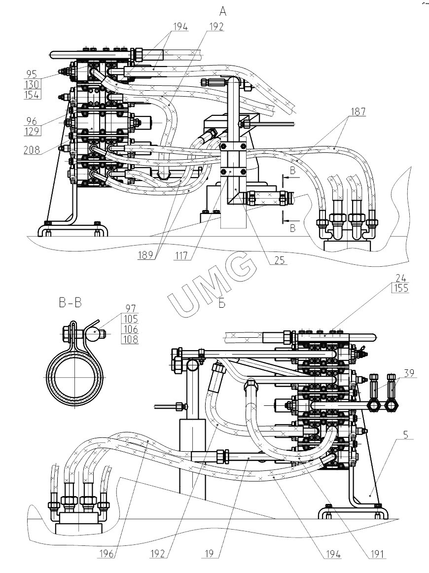 ЕК-14-20. 314-20-80.01.000-01 Трубопроводы на поворотной платформе (с гидравликой ПСМ)