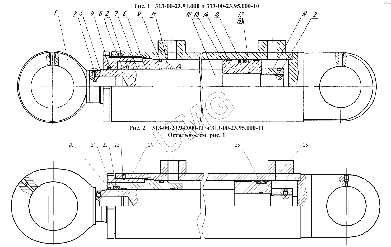 ЕК-14-20. 313-00-23.94.000 Гидроцилиндр ковша (с уплотнениями «Элконт»), 313-00-23.94.000-11 (с уплотнениями «ГидраПак»), 313-00-23.95.000-10 Гидроцилиндр стрелы (с уплотнениями «Элконт»), 313-00-23.95.000-11 (с уплотнениями «ГидраПак»)