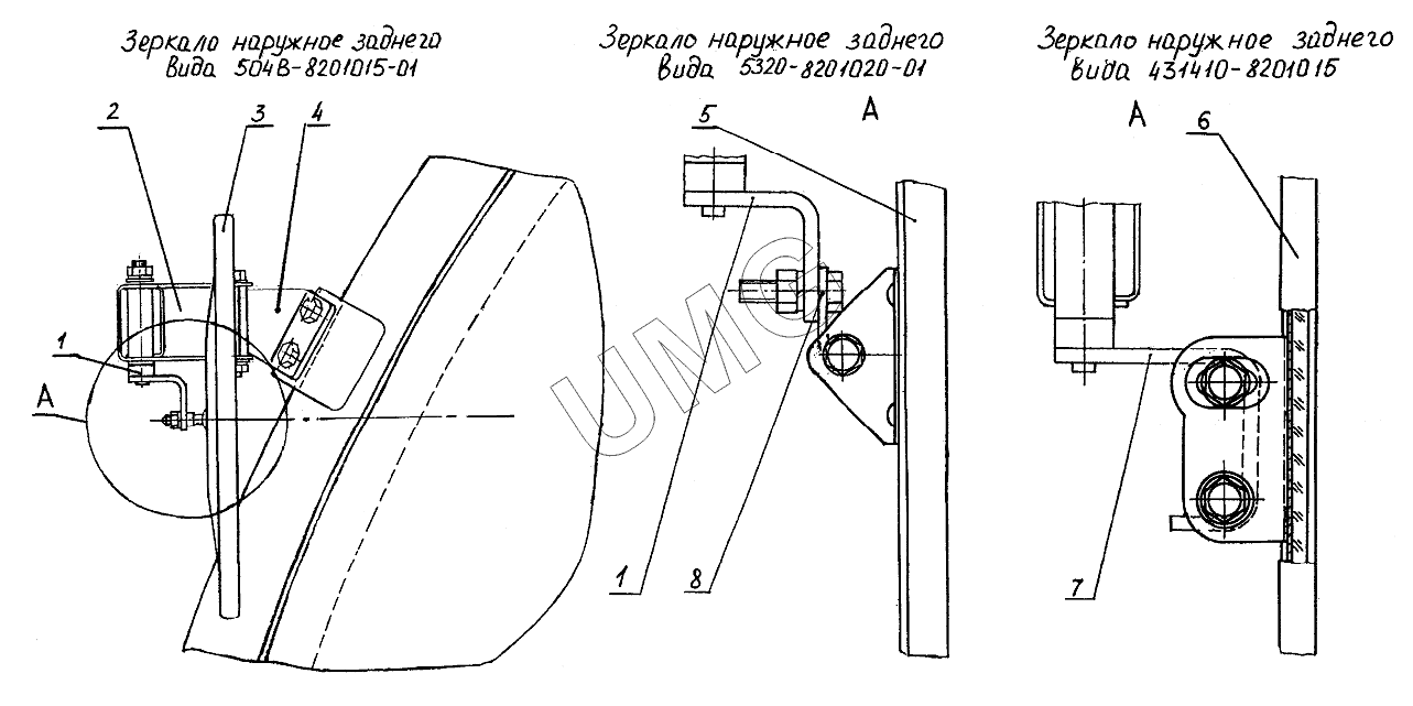 | 3 | 504В–8201015-01 | Зеркало наружное заднего вида ОСТ37.001.451-87 | |