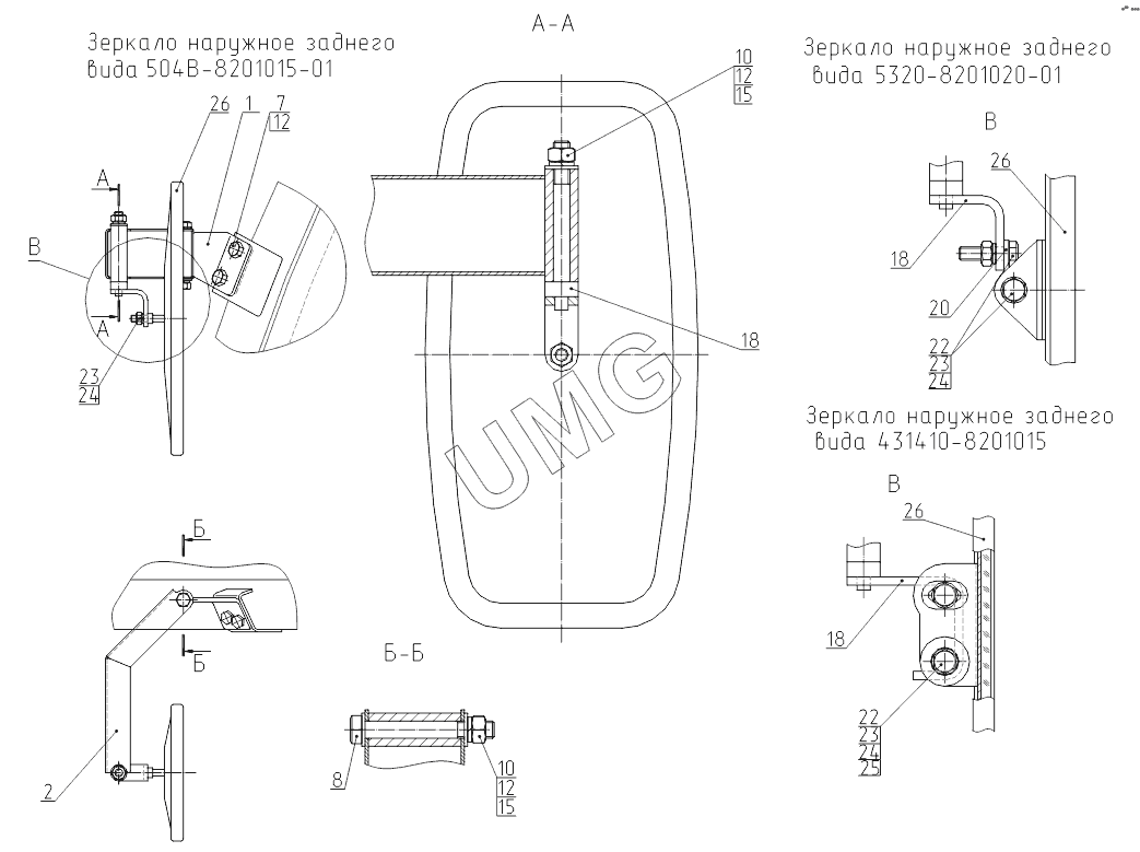| 26 | 504В–8201015-01 | Зеркало наружное заднего вида ОСТ37.001.451-87 | |