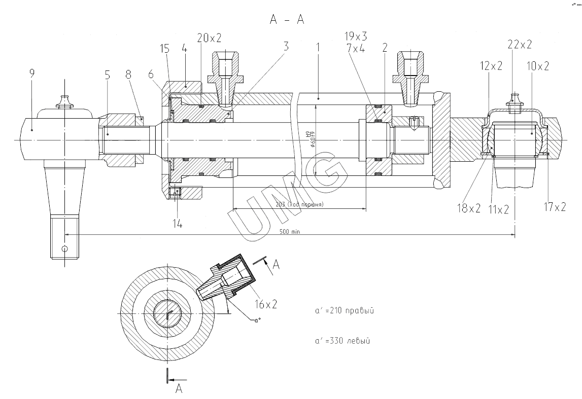 ЕК-18-90. ЭО-3323А.71.80.300-10 Гидроцилиндр поворота колес (правый), ЭО-3323А.71.80.400-10 Гидроцилиндр поворота колес (левый)