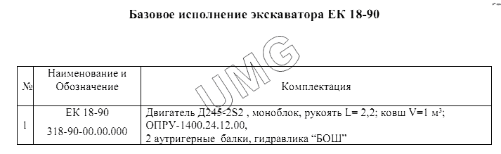 ЕК-18-90. Базовое исполнение экскаватора ЕК 18-90