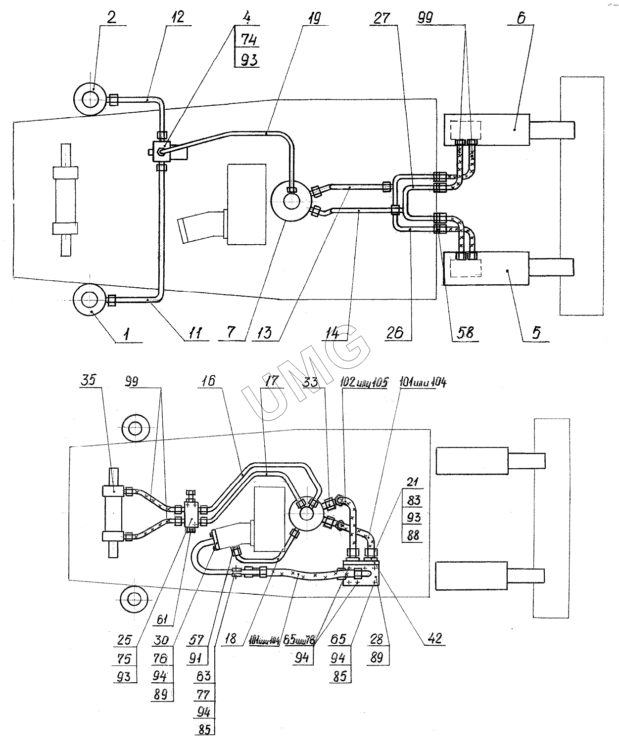 ЕК-12 (2013). 312-24-72.00.000 Гидрооборудование на ходовой раме для модификаций с опорой-отвалом и стабилизаторами (гидравлика Бош-Рексрот)