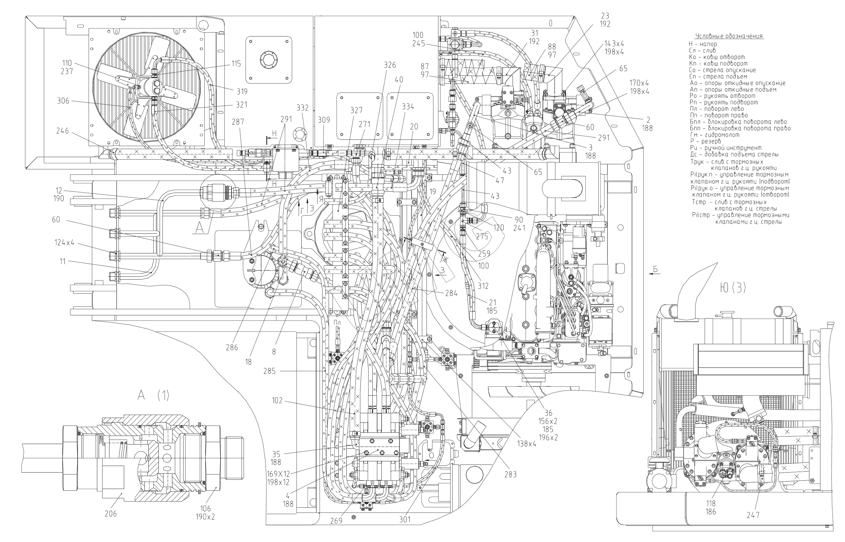 ЭОВ-3521М-1. 417-21-80.01.000 00 Трубопроводы на поворотной платформе (с разводкой под ручной инструмент), 417-21-80.01.000 10 Трубопроводы на поворотной платформе (без разводки под ручной инструмент)