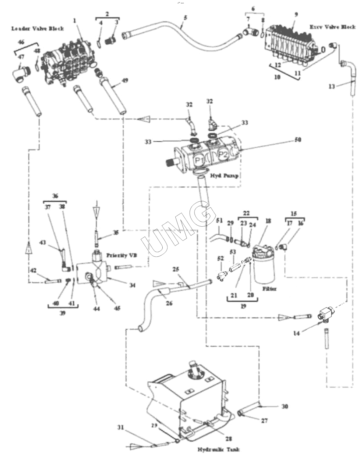 TLB 825. КОМПОНОВКА ГИДРООБОРУДОВАНИЯ