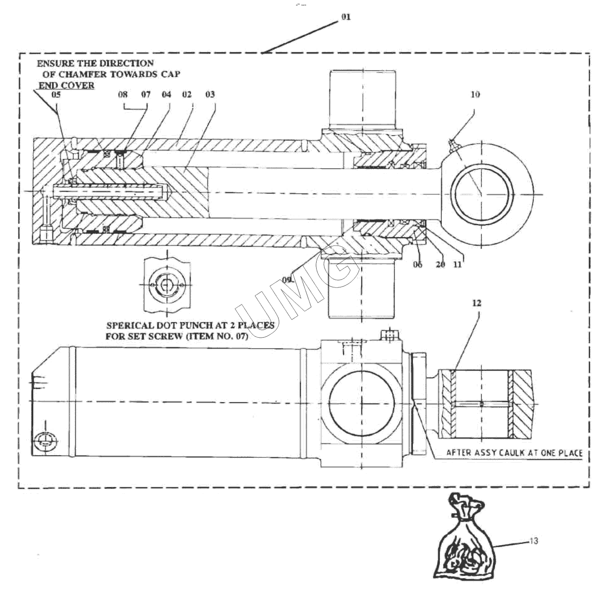 TLB 825. ЦИЛИНДР ПОВОРОТА/55 D. ПОВОРОТНАЯ ОСЬ ЭКСКАВАТОРА