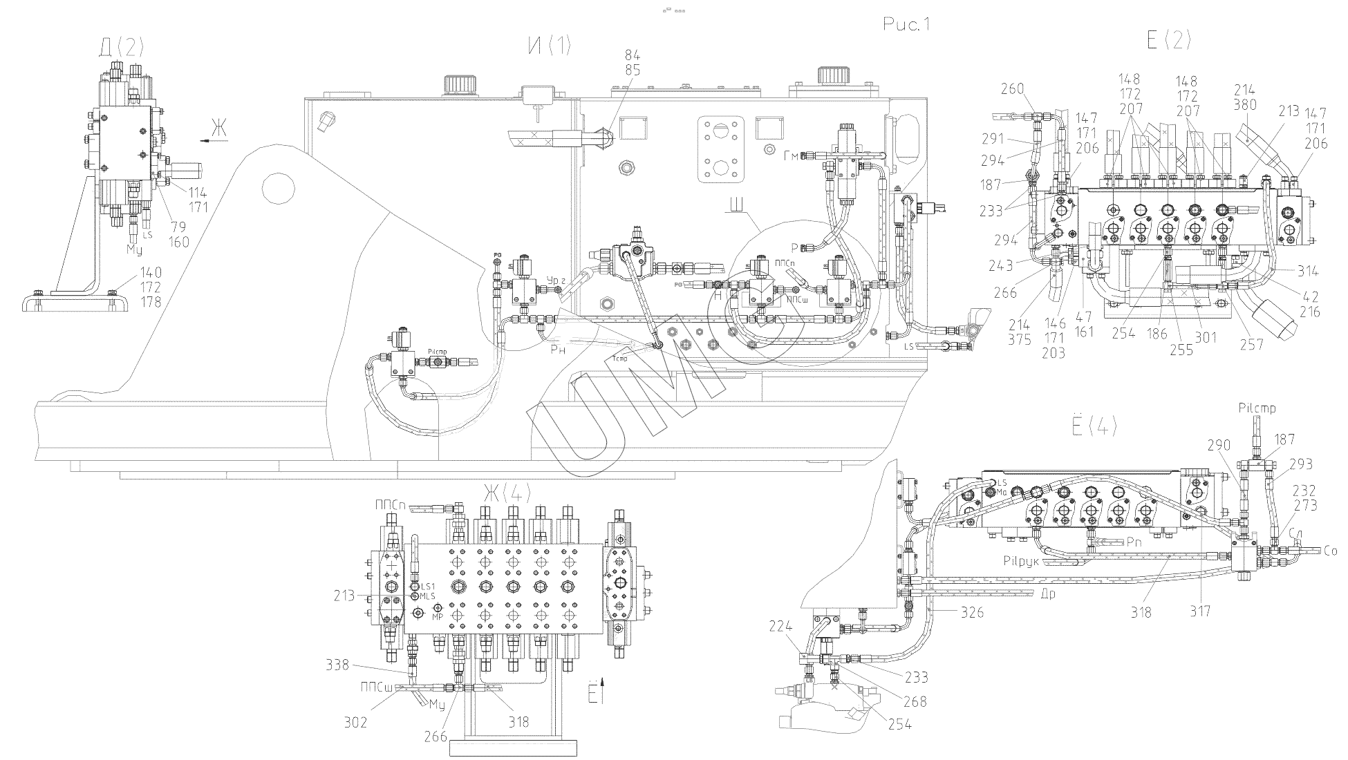 WX200. Гидрооборудование на поворотной платформе (механизм поворота “Sungbo”)
