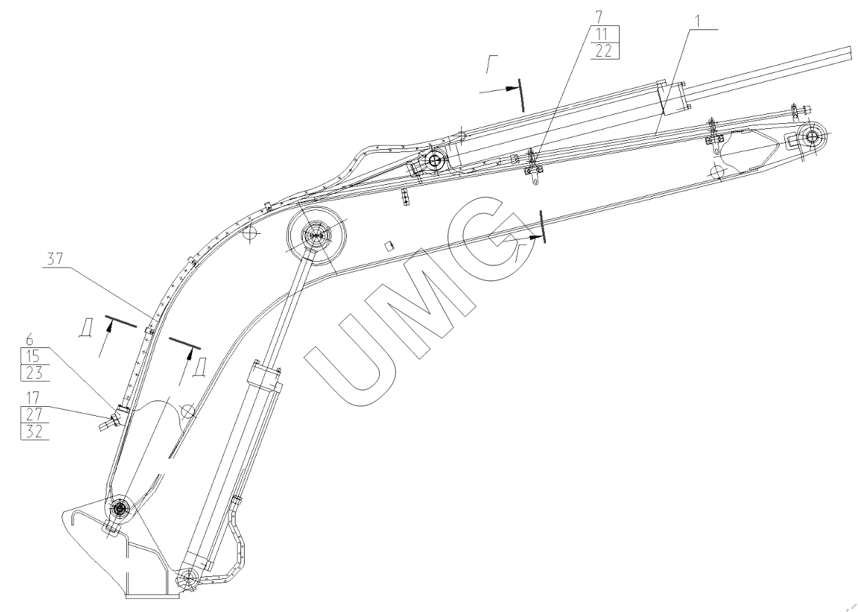 E170W. Трубопроводы стрелы в сборе с гидроцилиндром. 170-52-81.30.000