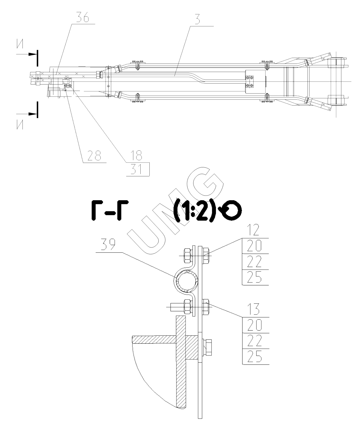 E170W. Трубопроводы стрелы в сборе с гидроцилиндром. 170-52-81.30.000