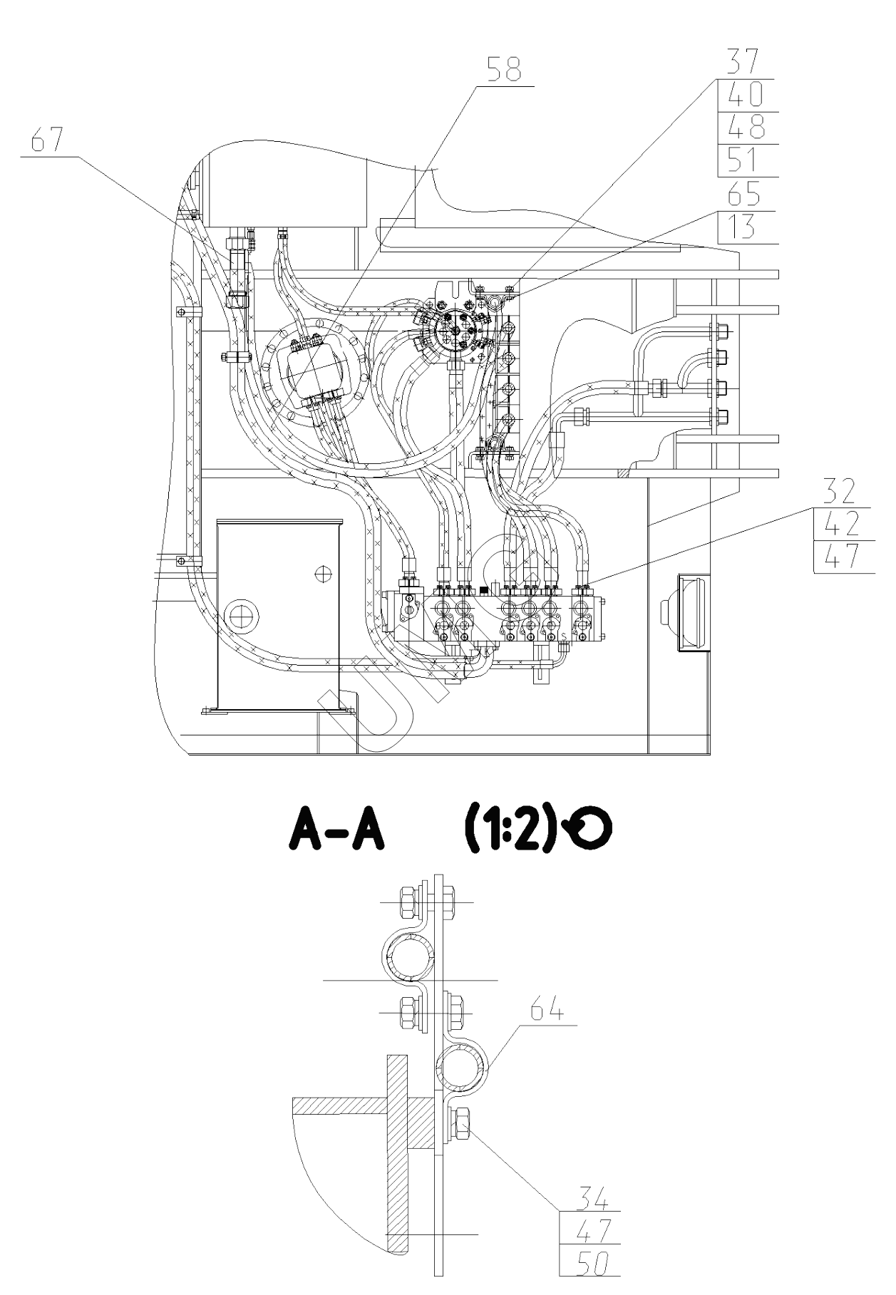 E170W. Трубопроводы гидромолота на рабочем оборудовании. 170-01-80.90.000-35-С