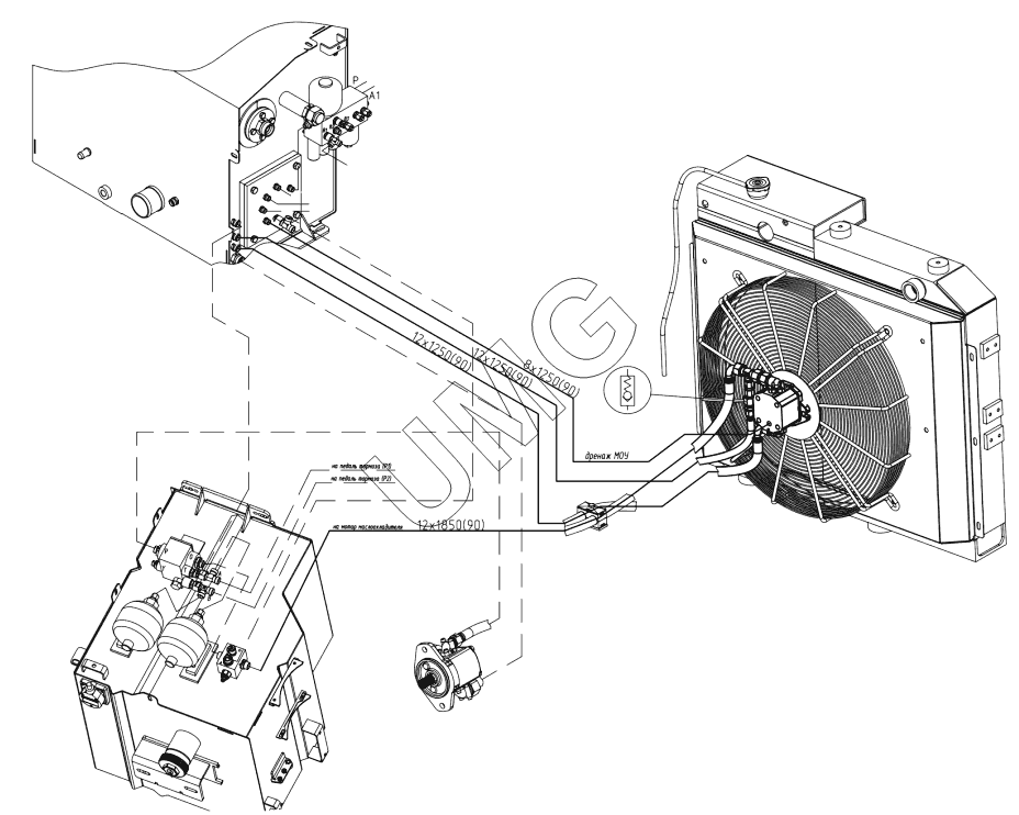 E170W. Трубопроводы блока радиаторов. 170-70-41.50.000