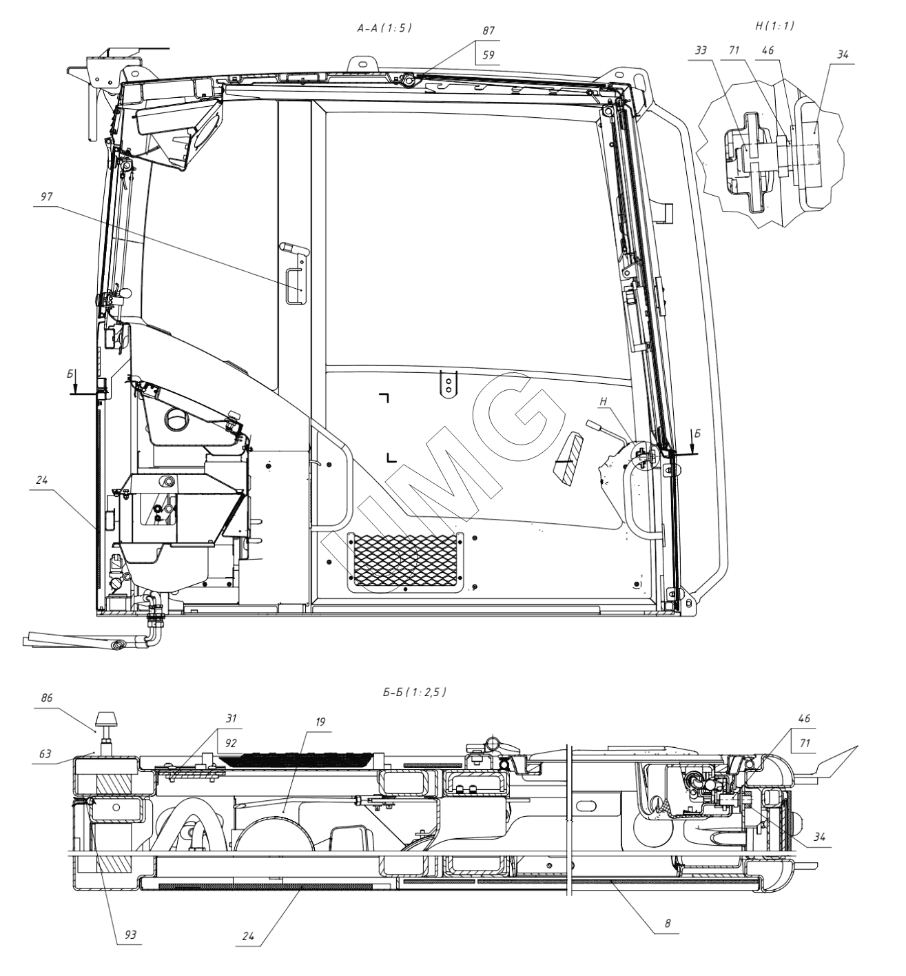 E170W. Кабина в сборе с FOPS ROPS. 405-00-23.00.000-21