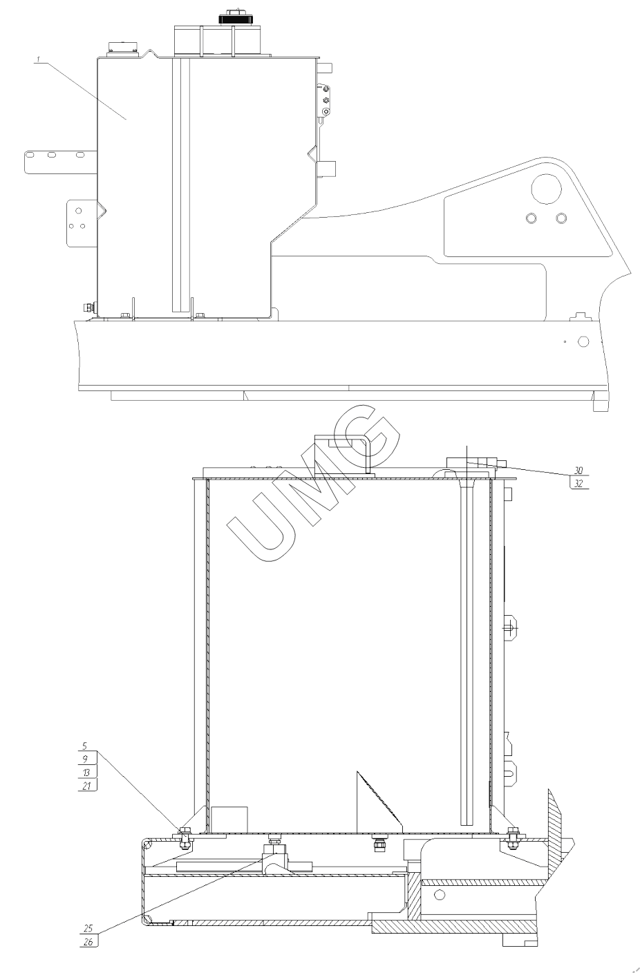 E200NC. Установка бака топливного. 195-17-27.00.000
