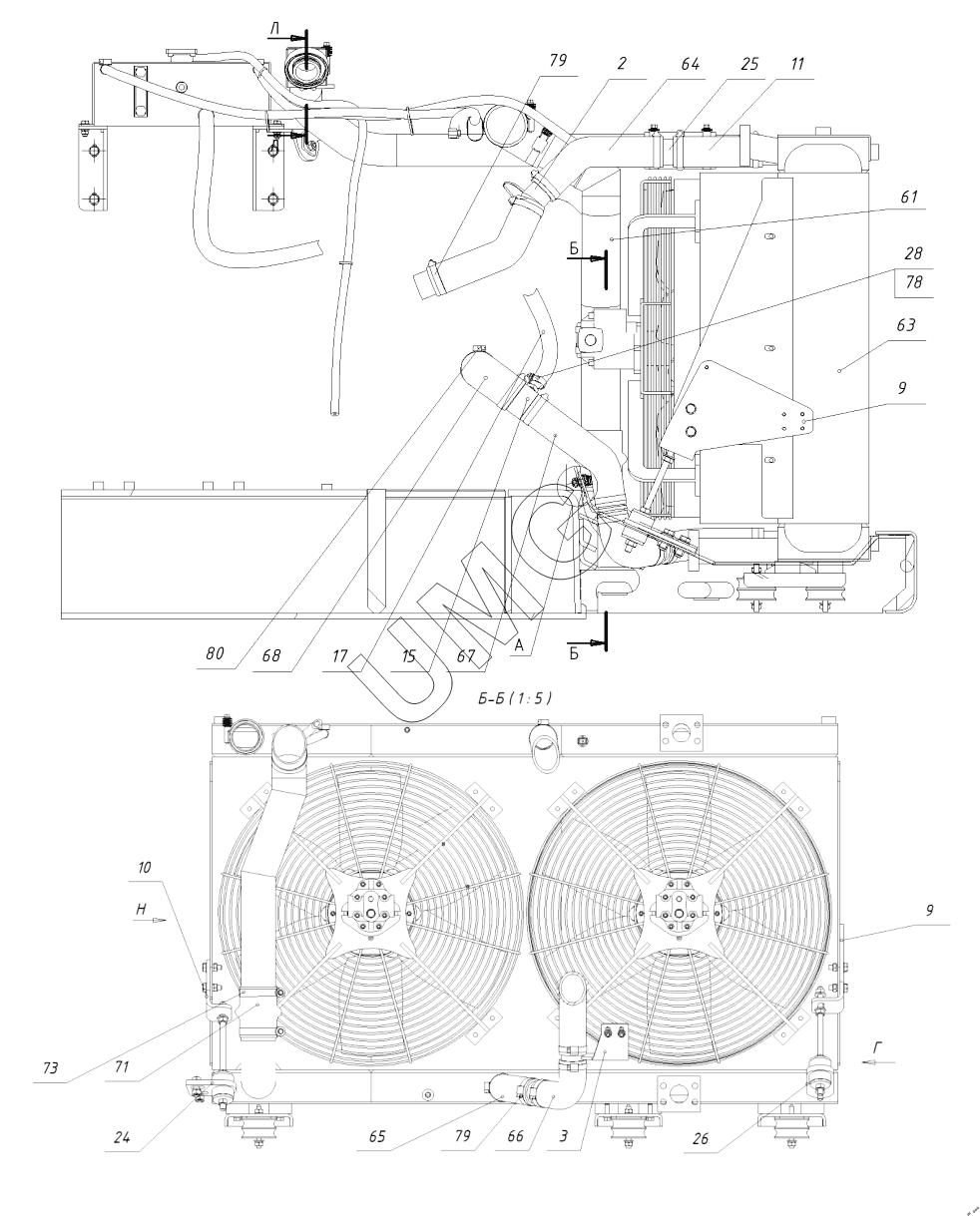 E330C Var 2. Установка радиатора. 272.12.10.02.000-20