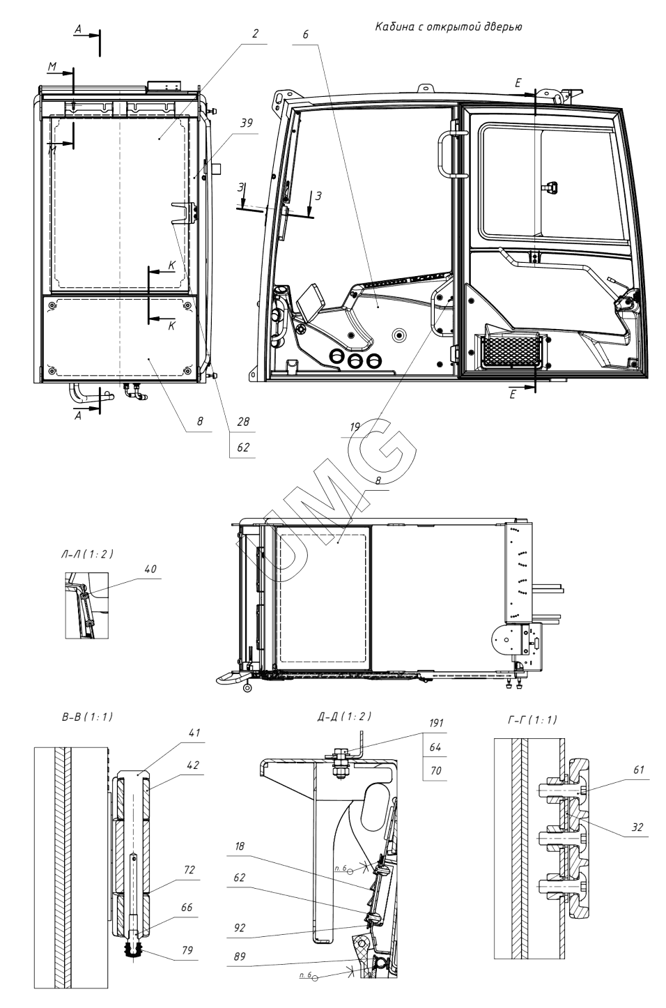 E330C Var 2. Кабина в сборе. 405-00-23.00.000-10