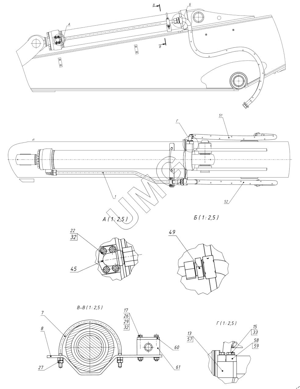 E330C. Гидроразводка рукояти. 303.08.03.00.000