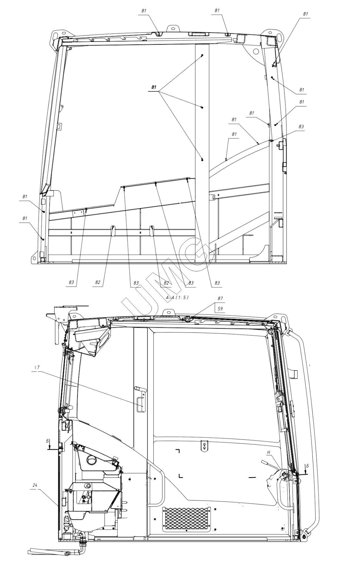 E330C. Кабина в сборе. 405-00-23.00.000-21