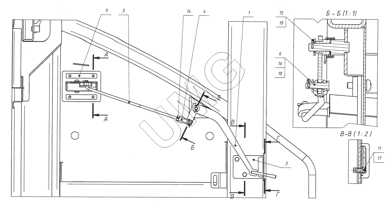 E330C. Установка фиксатора двери. 405-00-23.00.500