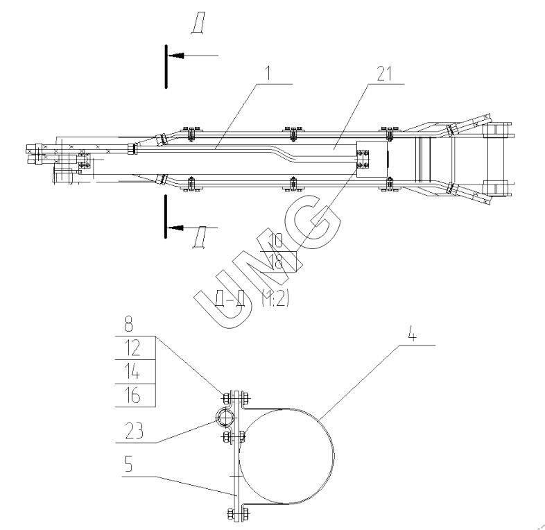E200W. Гидроцилиндр рукояти в сборе с трубопроводами. 170-52-81.30.100
