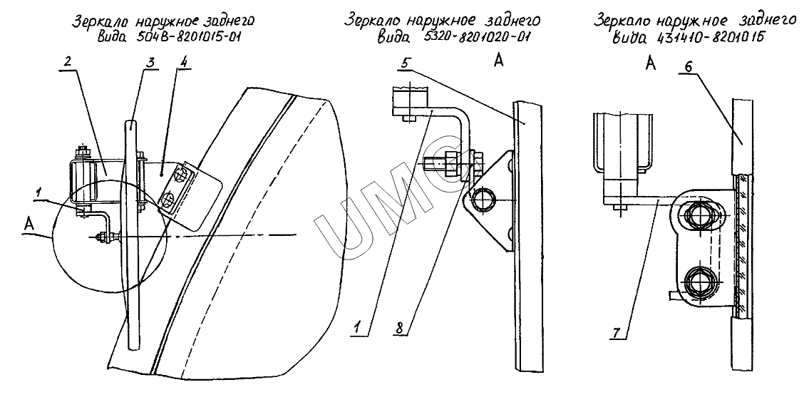 | 3 | 504В–8201015-01 | Зеркало наружное заднего вида ОСТ37.001.451-87 | |