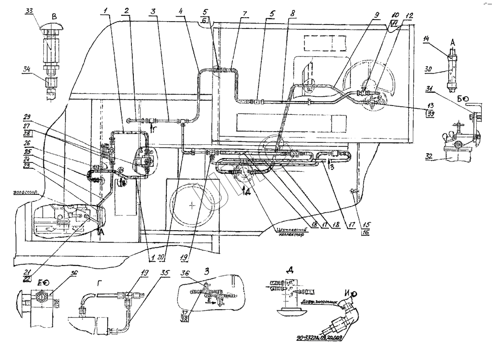 E145W (ЕК-14). Пневмоуправление на поворотной платформе 314-02-81.10.000