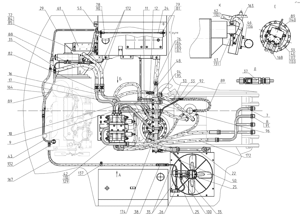 E145W (ЕК-14). Трубопроводы на поворотной платформе (с гидравликой "Bosch-Rexroth") 318-30-80.01.000