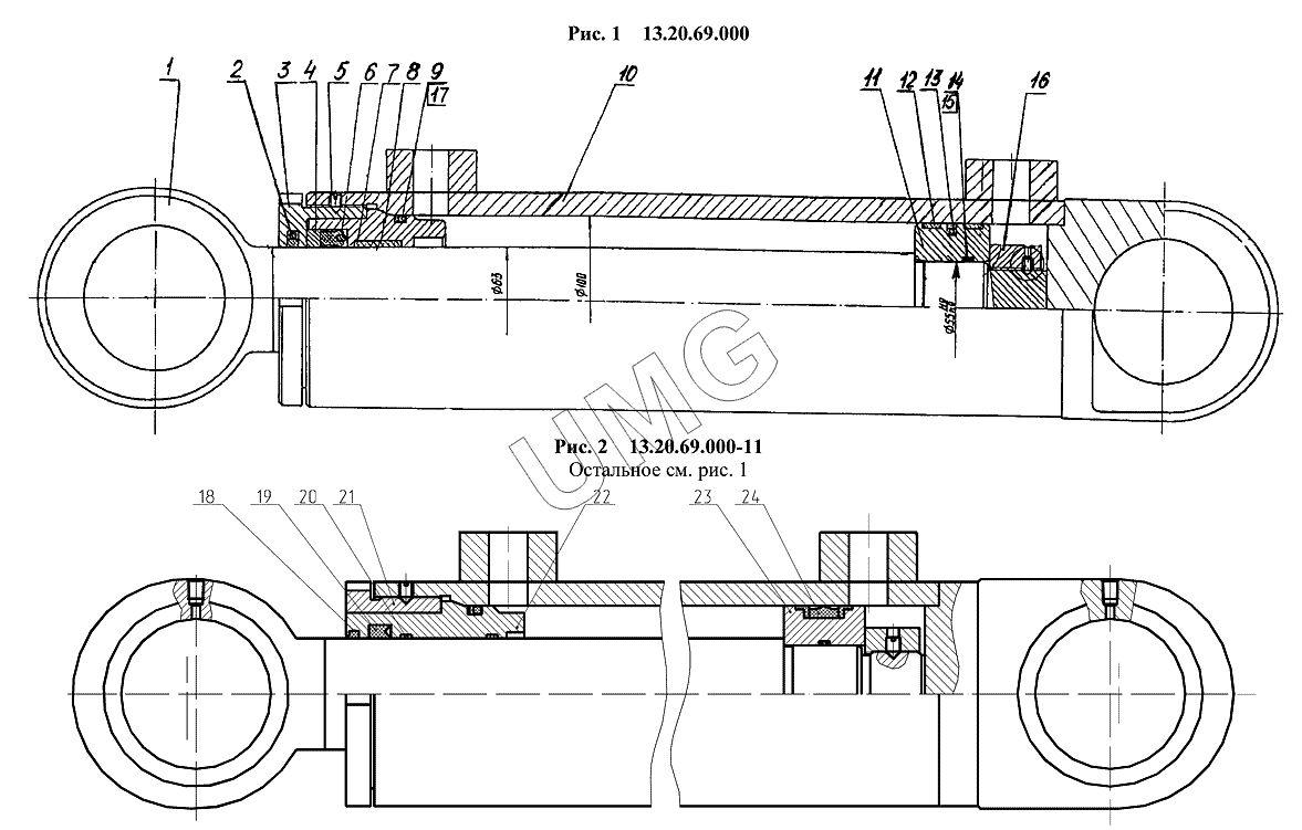 E145W (ЕК-14). Гидроцилиндр 13.20.69.000, 13.20.69.000-11