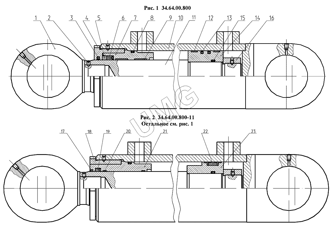 E185W (ЕК-18). Гидроцилиндр стрелы (с уплотнениями «Элконт», «ГидраПак») 34.64.00.800, 34.64.00.800-11