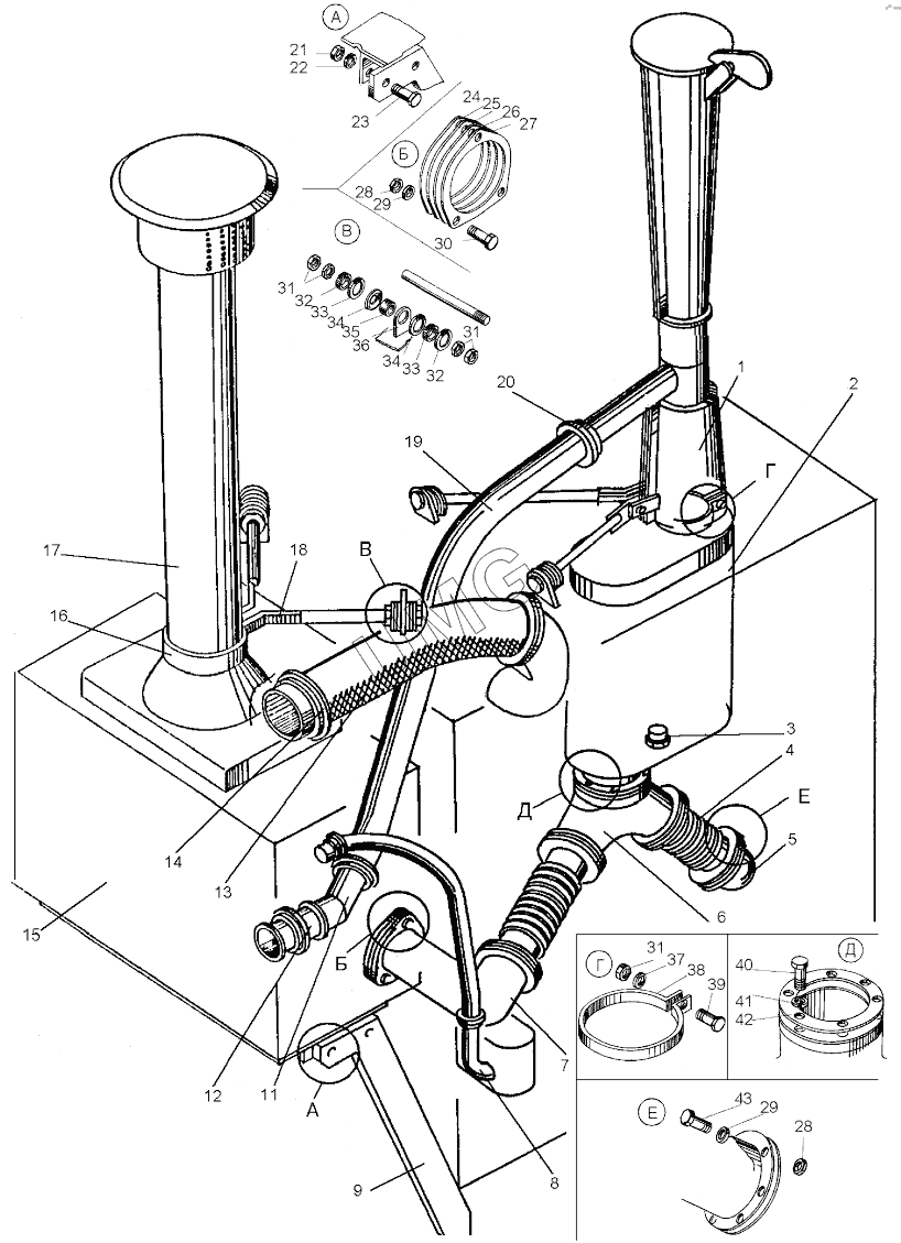 ДЗ-98В.1. Система всасывания и выхлопа (ДЗ-98В5.32.00.000)