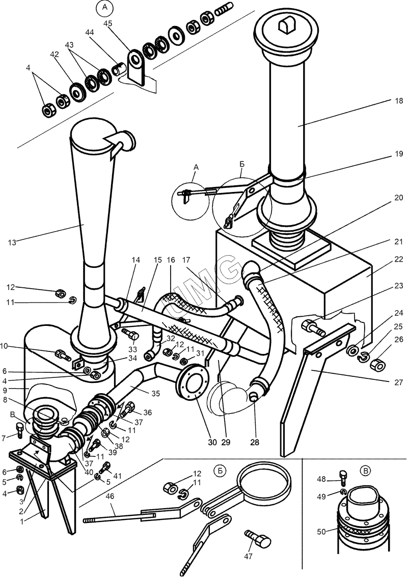 ДЗ-98В.1. Система всасывания и выхлопа (ДЗ-98В9.32.00.000)