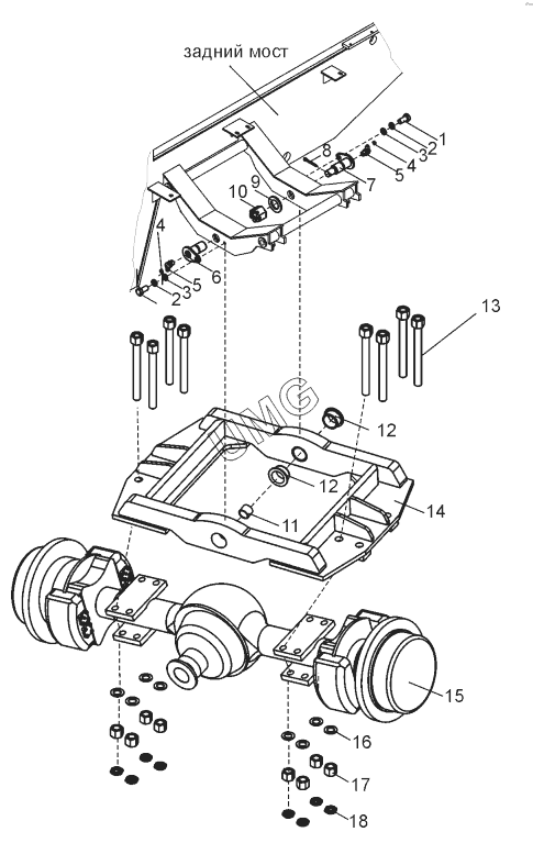 TL-150. Установка моста заднего (TL150.03.50.000)